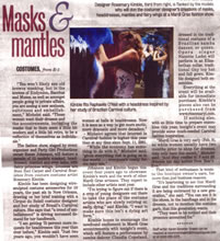 New Orleans costume designer Rosemary Kimble of Enrapturing Revisions marked 12th Night with a stunning presentation of her carnival costume creations. Guests delighted at the Monaco's Paris Ballroom, which was filled with whimsical masks, fairy wings, headdresses and doggie costumes. Opera chanteuse Claudia Copeland enchanted guests with angelic vocals during the evening soiree, while costumed characters mingled with the local socials for a night spun of pure fantasy.